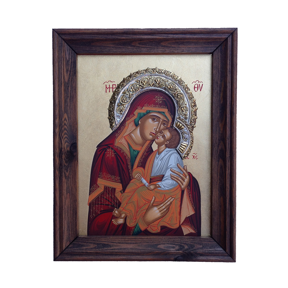 Εικόνα ξύλινη Ειδικά Θέματα (Μεταξοτυπία/Ασήμι) Παναγία η Γλυκοφιλούσα 20×25.5cm