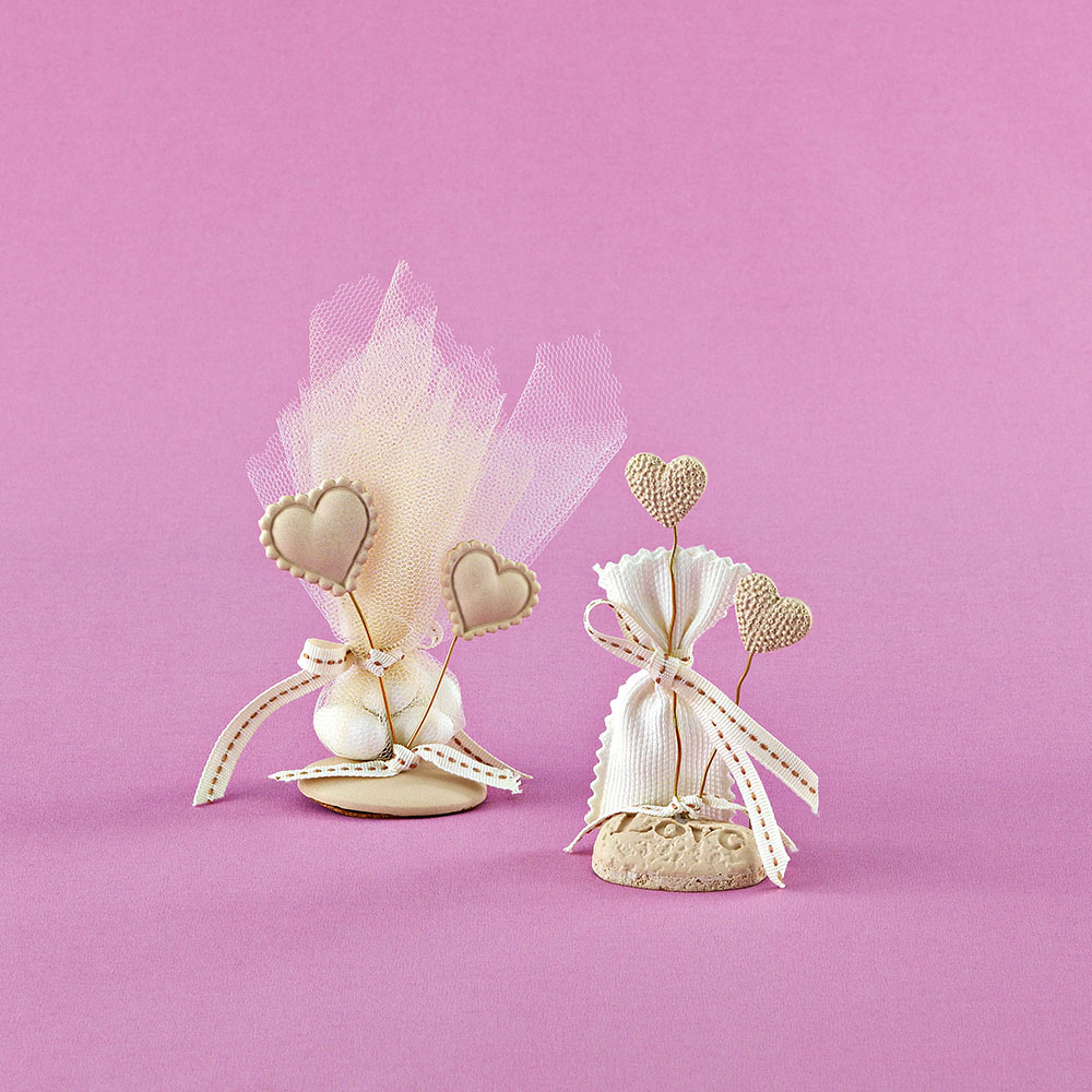 Μπομπονιέρα γάμου επιτραπέζιο διακοσμητικό με διπλή σκαλιστή καρδιά