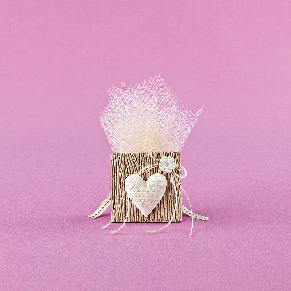 Μπομπονιέρα γάμου επιτραπέζιο καδράκι με σκαλιστή καρδιά και λουλουδάκι