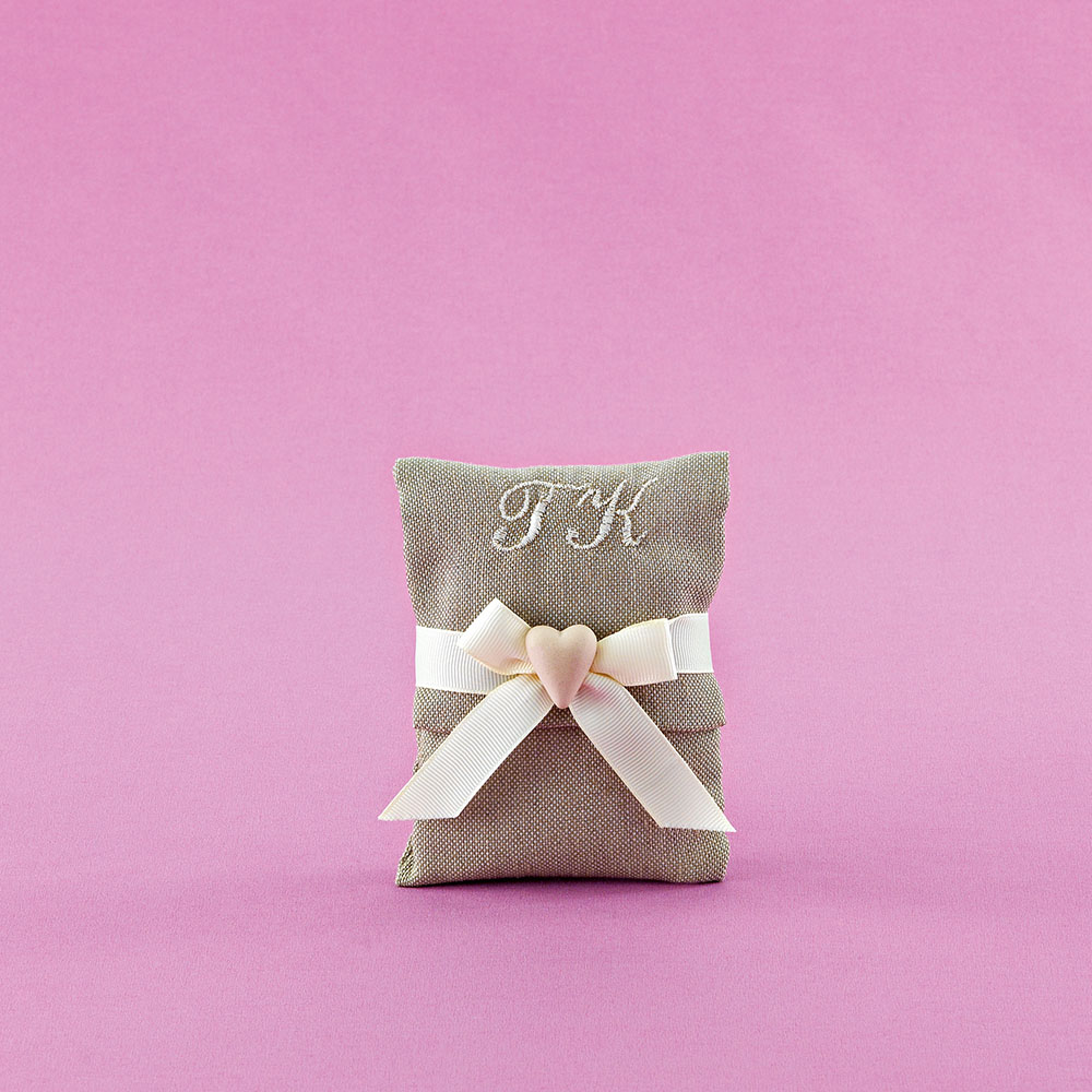 Μπομπονιέρα γάμου φάκελος τετράγωνος με καρδιά ροζ και ραμμένα τα αρχικά γράμματα. Όλες οι μπομπονιέρες περιλαμβάνουν 5 κουφέτα κλασσικά αμυγδάλου χατζηγιαννάκης (υπάρχει δυνατότητα αλλαγής στα κουφέτα με την ανάλογη χρέωση ανάείδος επιλογής).