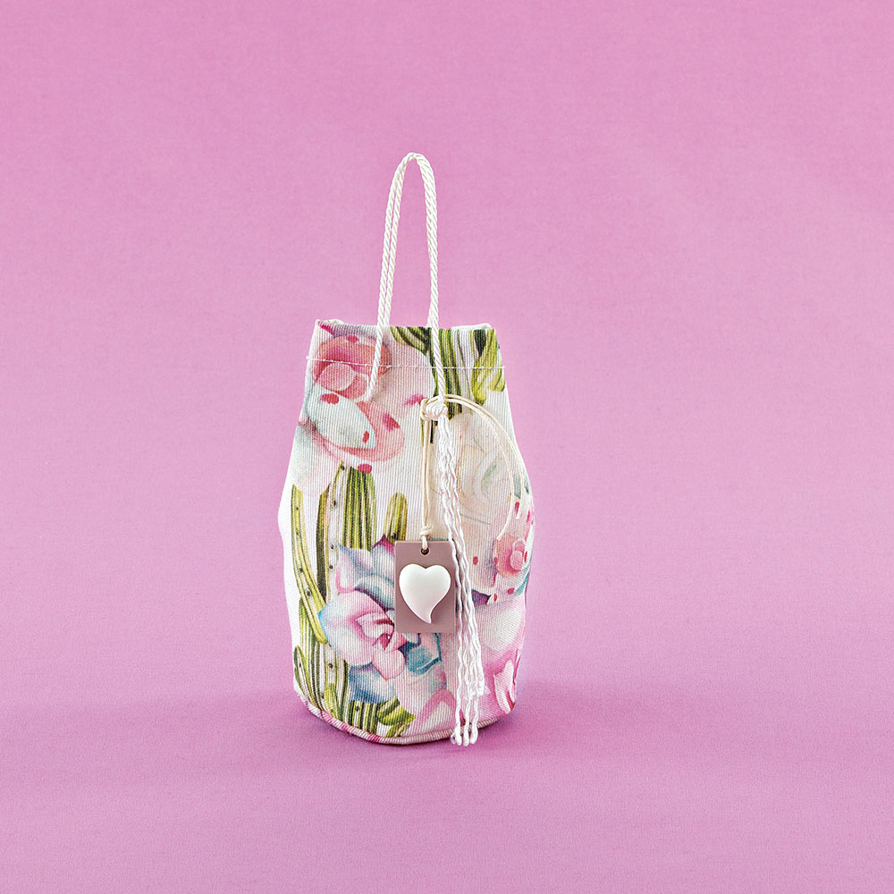 Μπομπονιέρα γάμου πουγκί φλοράλ με διακοσμητική καρδιά