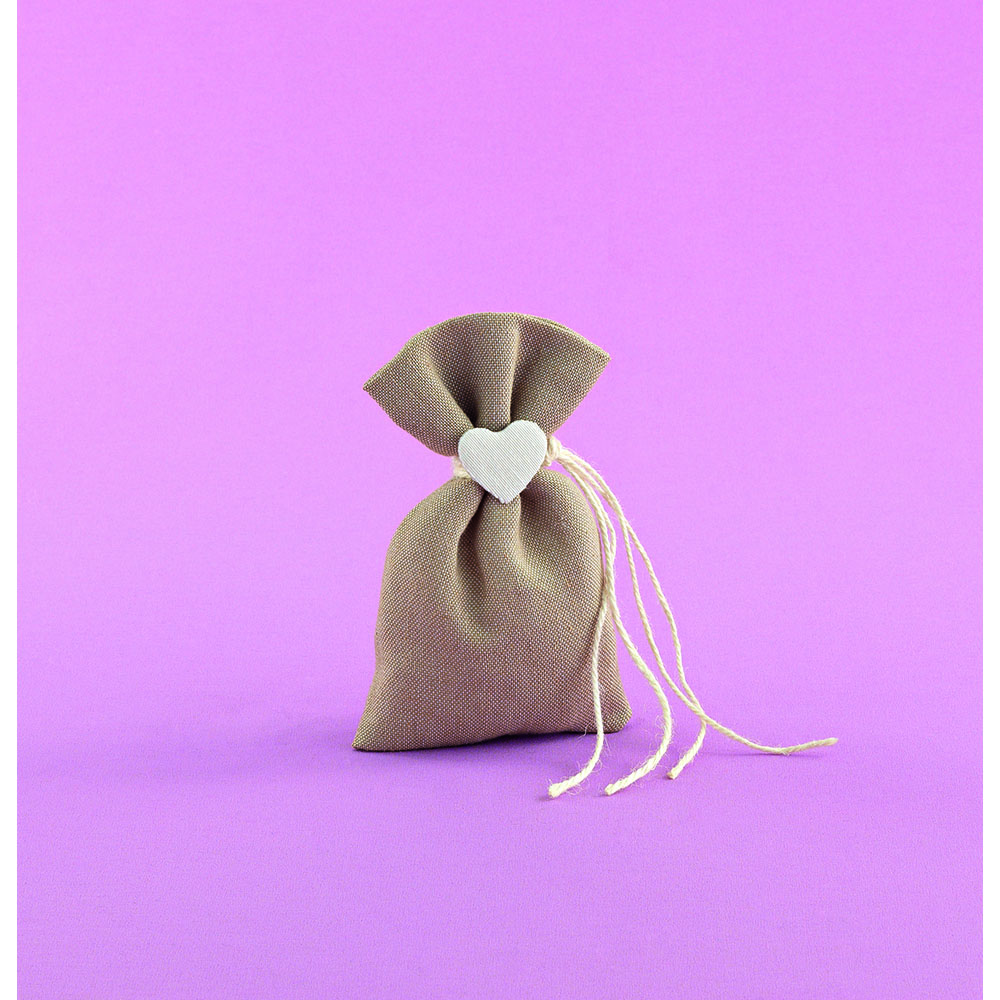 Μπομπονιέρα γάμου πουγκί λινό με διακοσμητική καρδιά υφασμάτινη