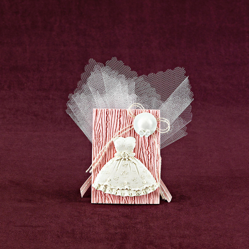 Μπομπονιέρα βάπτισης ακρυλικό ροζ πλακάκι με λευκό φόρεμα και λευκό καπελάκι. Όλες οι μπομπονιέρες περιλαμβάνουν 5 κουφέτα crispy πολύχρωμα χατζηγιαννάκης (υπάρχει δυνατότητα αλλαγής στα κουφέτα με την ανάλογη χρέωση ανάείδος επιλογής).